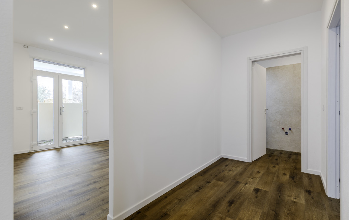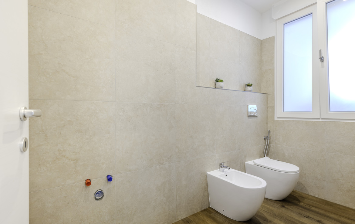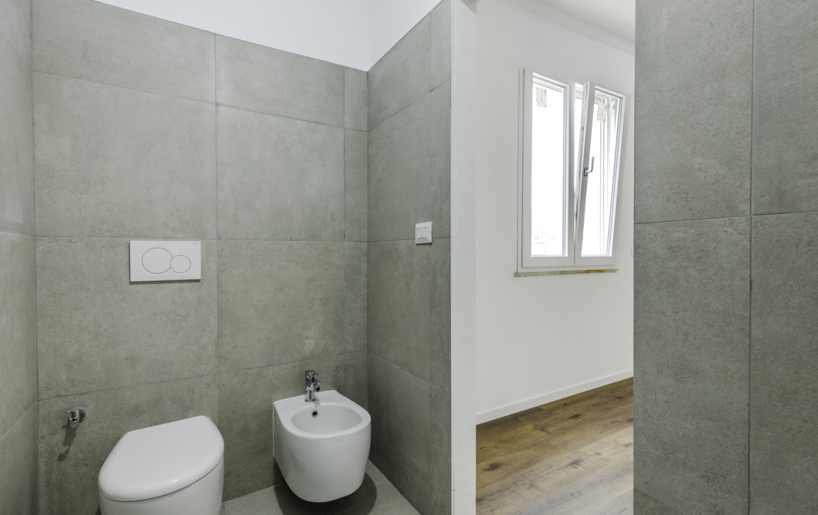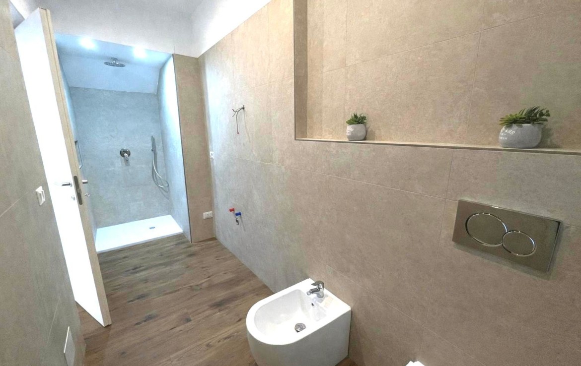 The bathrooms are modern and essential, designed for practical and comfortable everyday use. There is also an external laundry room already prepared for the realization of a third bathroom.