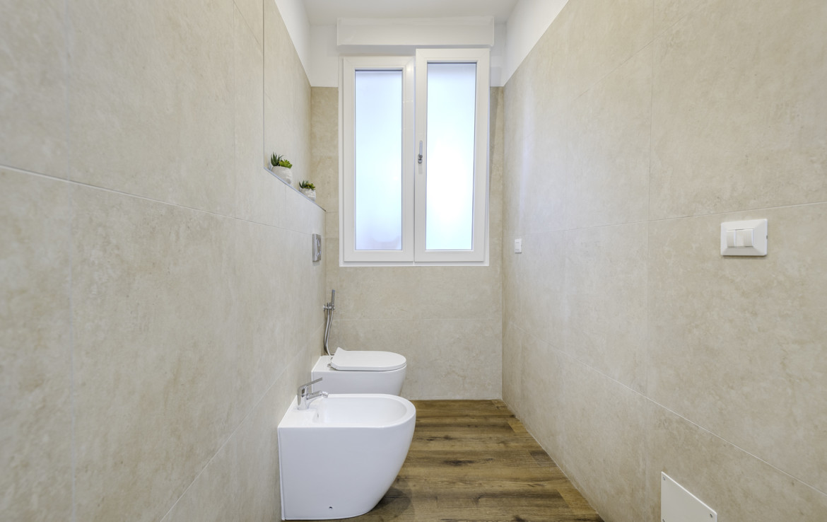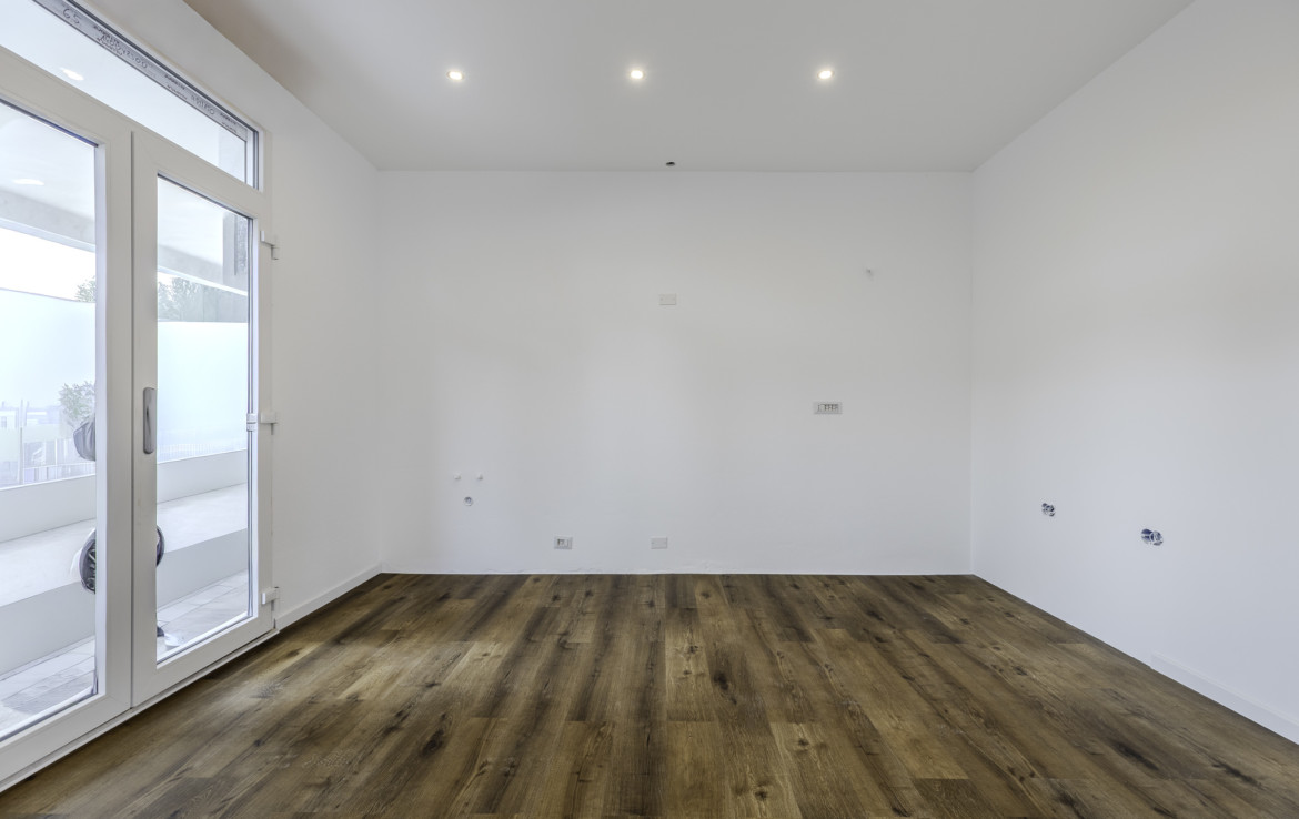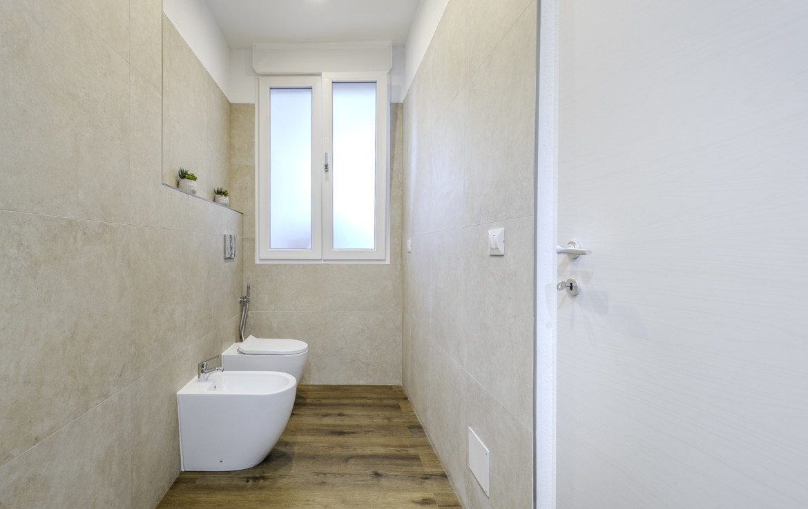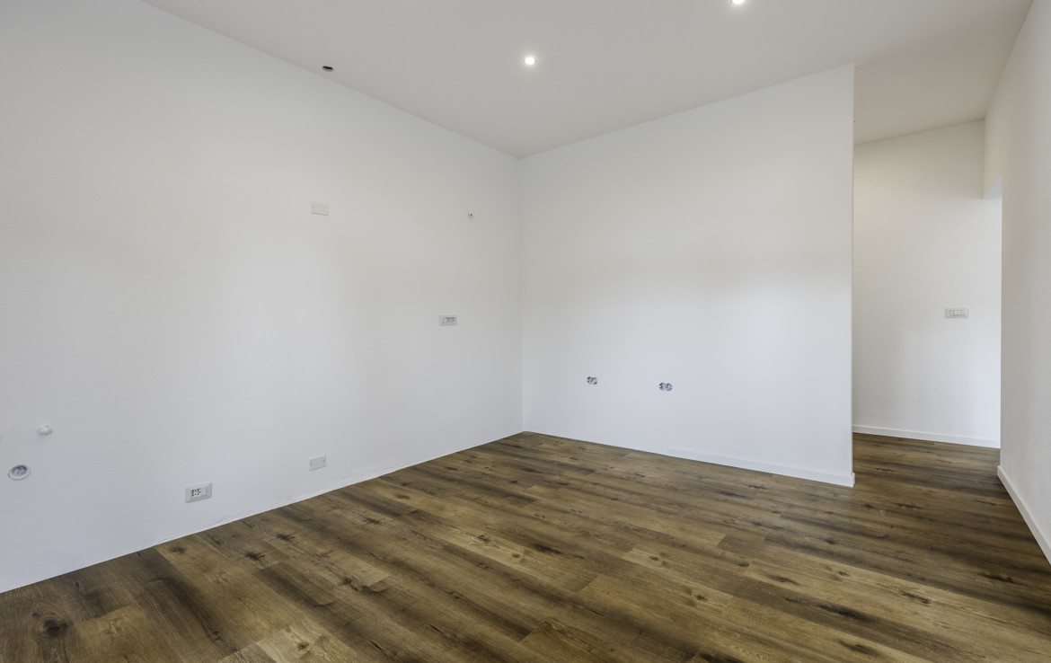 The bathrooms are modern and essential, designed for practical and comfortable everyday use. There is also an external laundry room already prepared for the realization of a third bathroom.