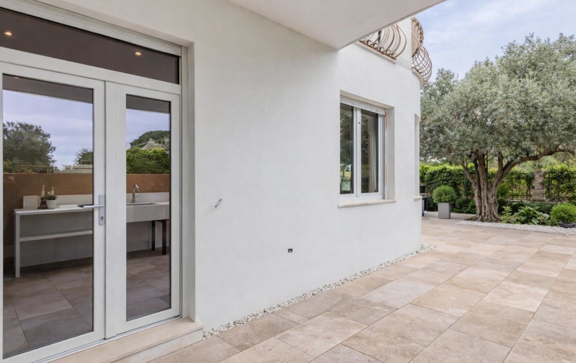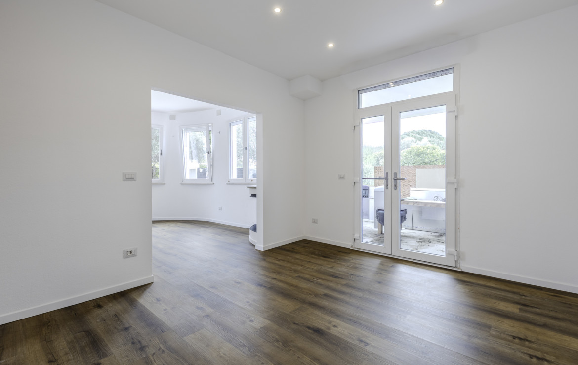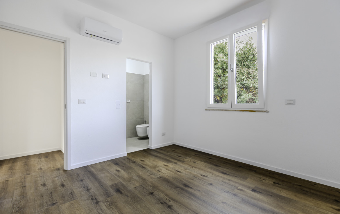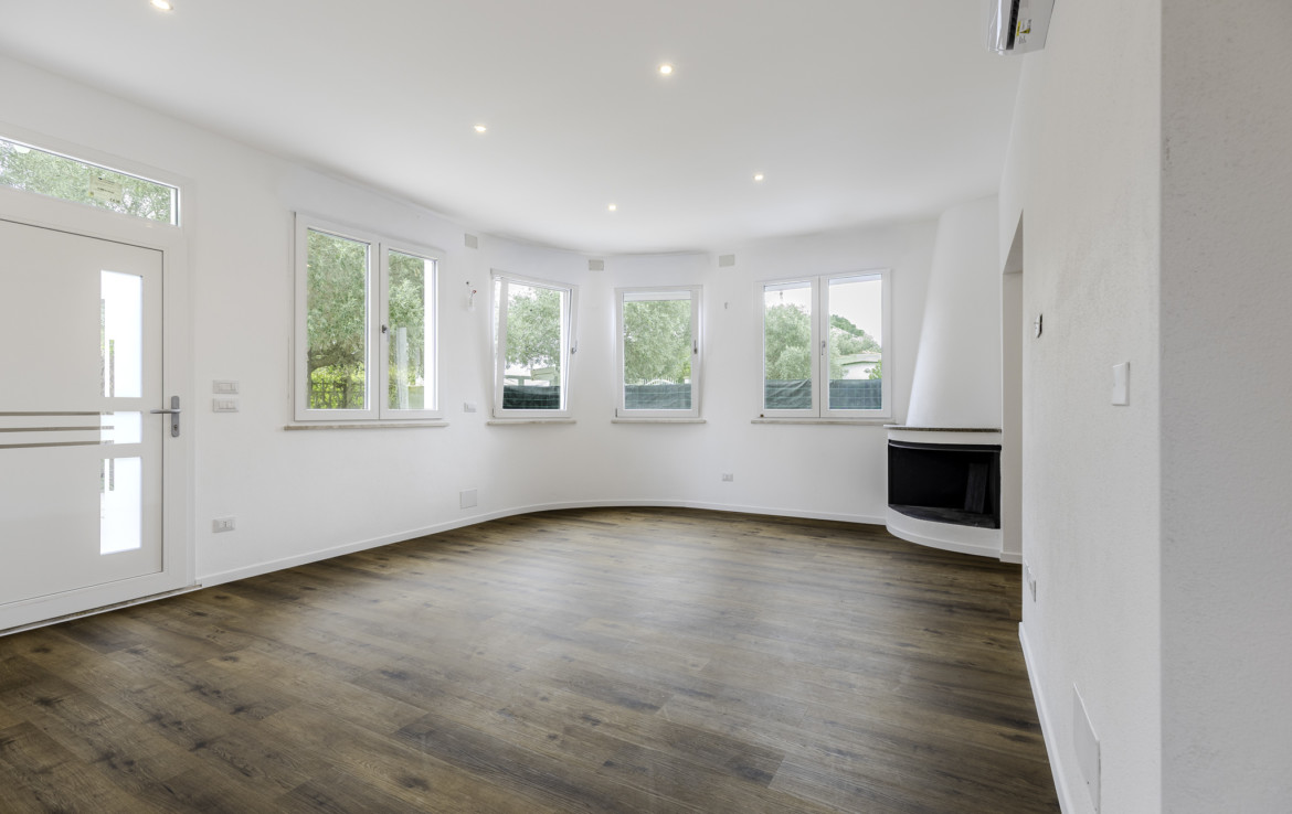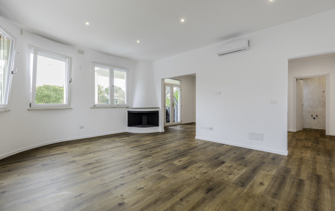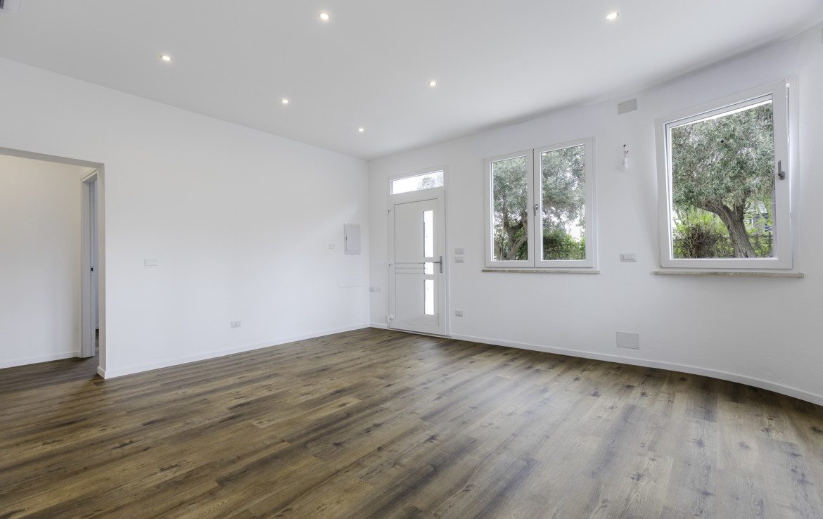 We offer for sale an independent apartment on three sides, entirely developed on the ground floor, set within a green, private residential context just a short distance from the sea and local services. The property stands on a plot of approx. 360 sqm and has been fully renovated, with works completed in January 2026, presenting today in excellent condition.