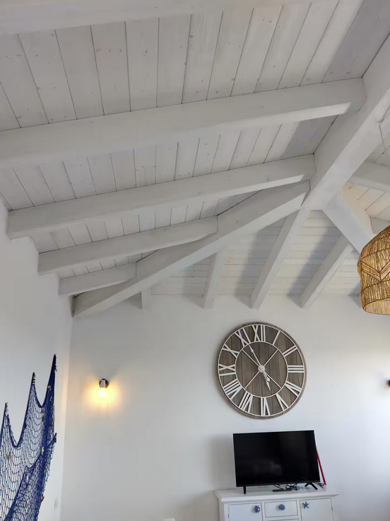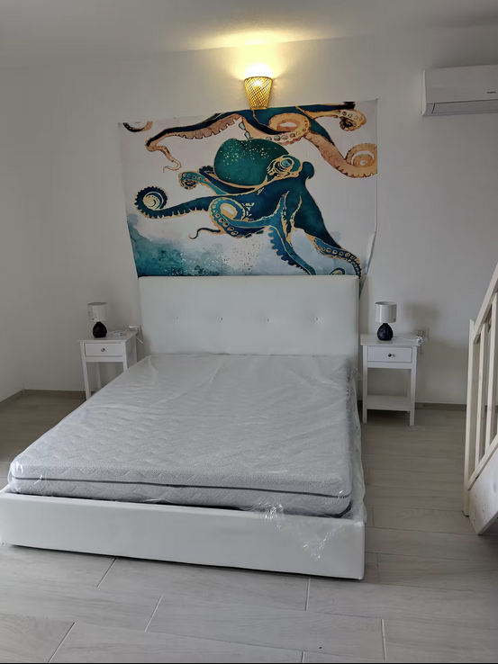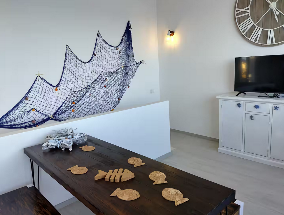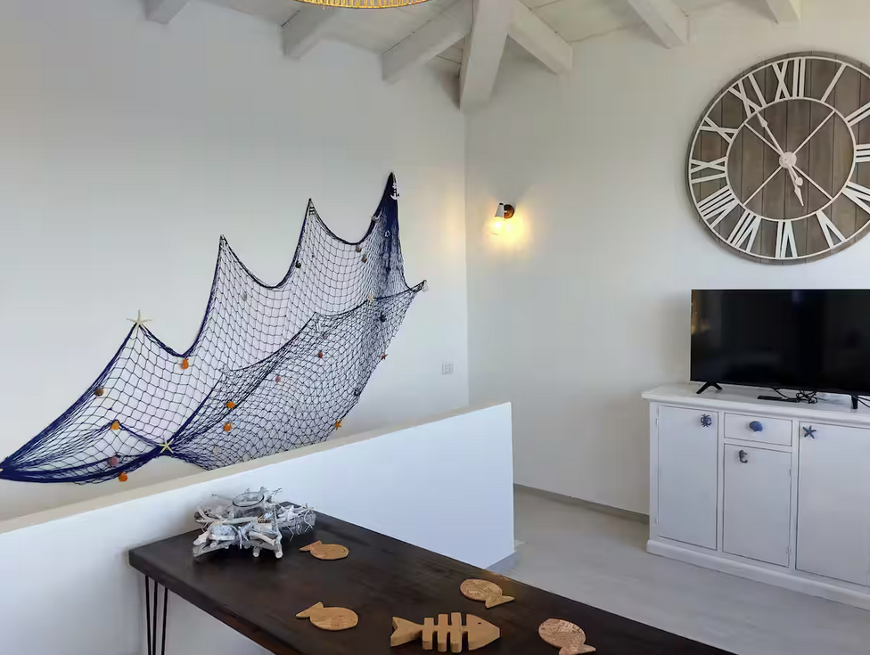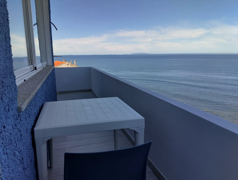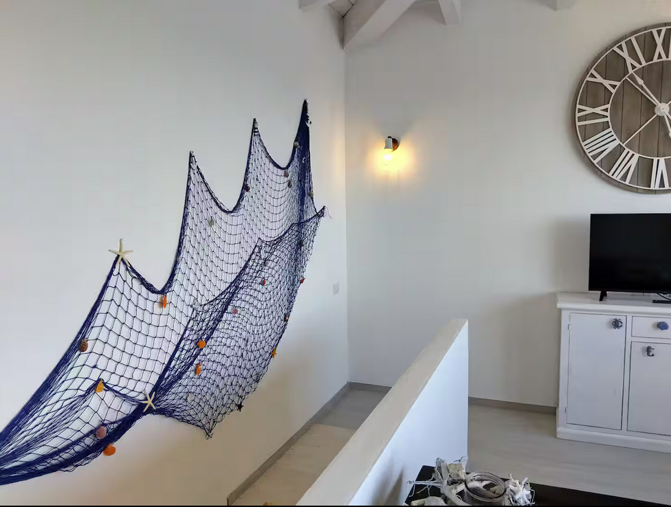 Recently renovated, the property feels brand new and is ready to host unforgettable moments. The interiors are bright and airy: the living area on the upper floor, with white exposed beams and a large panoramic window, frames the sea like a painting. The modern kitchen opens directly onto the endless blue, turning even daily routines into special experiences.
